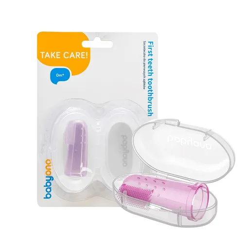 BabyOno Take Care First Toothbrush dětský zubní kartáček na prst s pouzdrem Pink 1 ks
