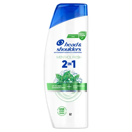 Šampon a kondicionér proti lupům 2in1 Menthol pro všechny typy vlasů a všechny typy pokožky hlavy. Působí i proti odolným lupům. Šampon pro každodenní použití pro muže i ženy se složením Microbiome Balance, které se zaměřuje na hlavní příčinu lupů a udržuje vyvážený mikrobiom pokožky hlavy. Působí proti viditelným i neviditelným lupům tím, že uvolňuje 2x více ochranných složek, které se dostávají do pórů a brání návratu odolných lupů. Tento šampon 2v1 obsahuje o 25 % více ošetřujících složek než běžný šampon Head & Shoulders, je klinicky ověřený, dermatologicky testovaný a má vyvážené pH.