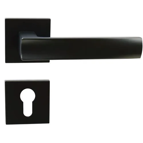 Hliníkové kování na čtvercových rozetách s vratnou pružinou klik Praktické 2 sady šroubů, bez nutnosti jejich zkracování pro dveře tloušťky 40 mm Dodáváno pro tloušťku dveří 32–58 mm Balení vč. sp...
