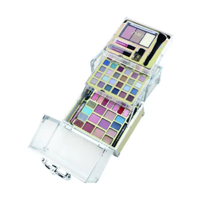 Kosmetický kufřík akrylátový zlatý ‚Glam‘ – celkem 64 ks příslušenství. Obsahuje 30 ks očních stínů, 2xlesk na rty, 1xtřpytivý lak na nehty,1xštětec, 3xoční linky, 7xkrémová rtěnka, 6xštětec, 4xtř...